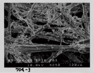 セルロース繊維に抗菌セラミックスを担持 倍率×250倍